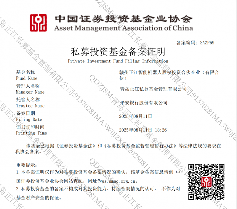 近日,中国首支由政府引导、明确聚焦机器人领域的链主基金——赣州正江智能机器人股权投资合伙企业(以下简称“江西正江基金”)成功完成备案,正式启航。