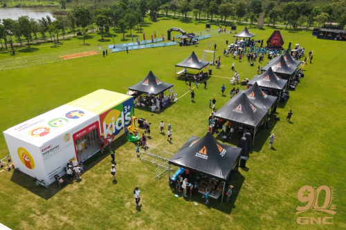 为让参赛家庭深度感受品牌温度,GNC健安喜以“沉浸式营养体验”为核心,打造了极具辨识度的互动展台,在海湾森林公园中宛如一个巨型的“营养能量站”,瞬间吸引了众多家庭的目光。