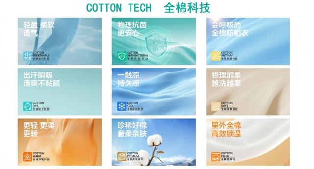 面对日新月异的市场,全棉时代从消费者潜在需求出发,自研全棉透气、凉感、速干、抗菌、防晒、柔软、全棉芯、保暖、高端九大全棉科技,把棉花的特性发挥到极致,打造出更舒适、健康、环保且具备强功能化的全新产品。