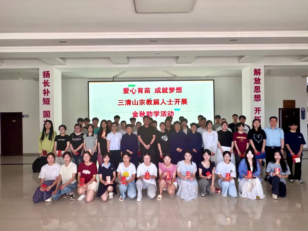仪式现场,三清山宗教界人士为受助学生逐一发放助学金,传递社会关怀。枫林社区张可欣、郭之恒与中村村王馨雅作为学生代表发言:“感谢镇党委、政府和社会各界的帮助,我们会把这份关怀化作学习动力,勤奋钻研、锐意进取,未来努力成为对国家、社会、家乡有用的人,以优异成绩回报桑梓。”据悉,本次“金秋助学”活动共资助学子63名。仪式结束后,受助学子在镇政府大门前合影留念,定格这一温暖时刻。