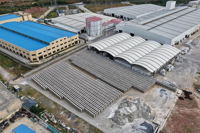 成品双块式轨枕整齐堆放在昌九高铁智能化轨枕厂