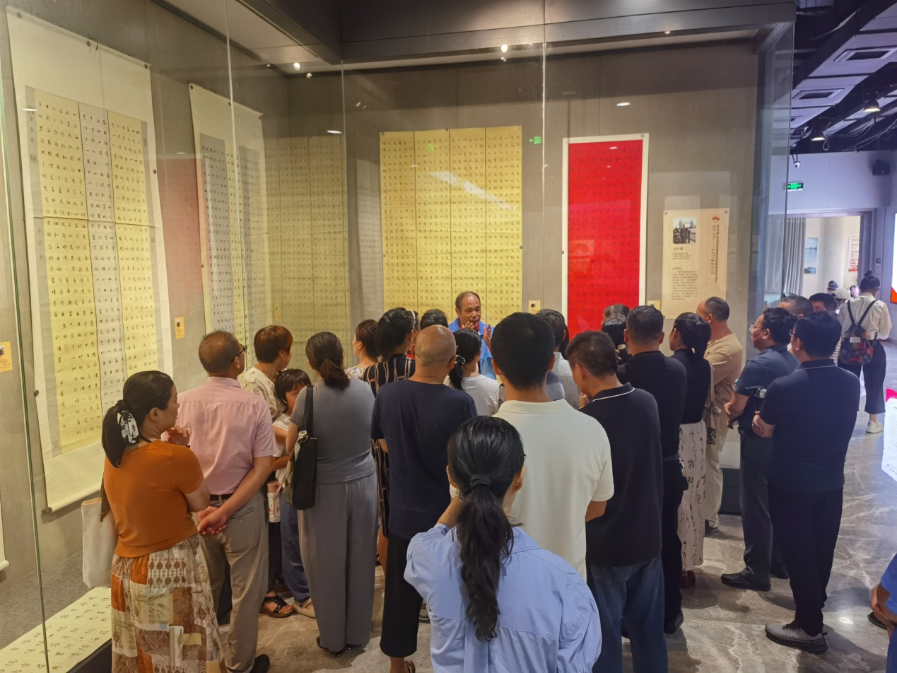 8月31日,在吉安美术馆展厅,一场现场书法教学正在精彩上演,江西省“四个100”文化导师、省书协副主席、市书协主席、井冈山大学直属单位党委书记马于强,正在为前来观展的吉州区书法班学员作详细讲解。