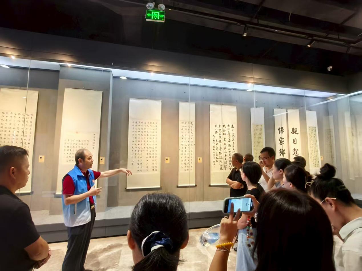 走进展厅,一幅幅精美的书法作品在眼前次第展开。马于强依次从作品的取法、作品的形式、作品的内容、作品的用墨等方面向学员进行了详细讲解,并深入浅出地剖析了书法的历史脉络与文化底蕴,传授了书法创作的基本要点和注意事项。