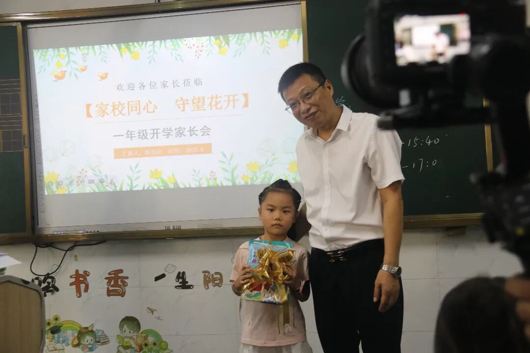 8时30分,校领导走进一年级教室,化身“成长引路人”。他们与新生亲切交流,鼓励孩子们尽快适应校园生活,在快乐中学习、在陪伴中成长;同时送上书籍,希望孩子们在知识海洋中探索,养成爱读书、善思考的好习惯。校领导还与家长深入沟通,凝聚家校育人合力,为孩子成长筑牢坚实后盾。