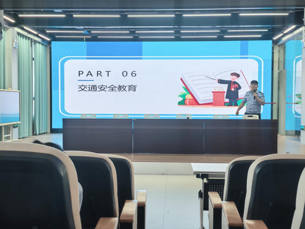 此外,本次讲座特别增设了交通安全板块。周震宇结合学校周边的交通环境,详细讲解了步行、骑行以及乘车时的安全规则,重点强调了“一盔一带”的重要性,告诫学生要遵守交通信号、不在马路上追逐打闹、远离车辆盲区。