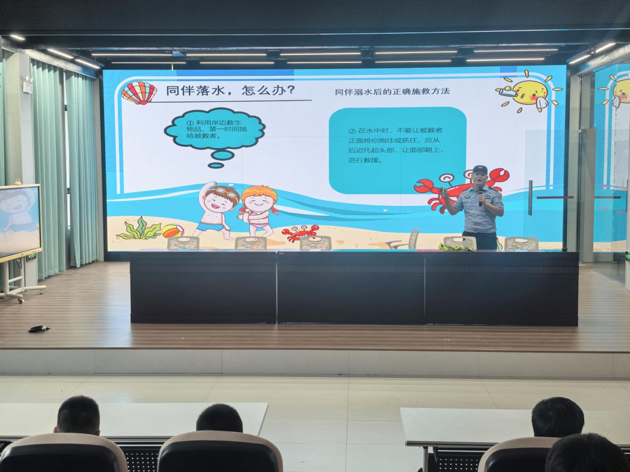 夏季是溺水事故的高发期,防溺水教育尤为关键。周警官重点讲解了野外水域的危险性、安全游泳的注意事项以及遇到溺水情况时的正确自救与互救方法,告诫学生不私自下水游泳,不盲目施救,切实增强安全防范意识,筑牢防溺水安全防线。
