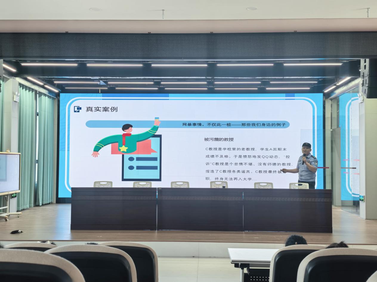 随着互联网的普及,网络安全与防范电信诈骗教育显得尤为迫切。法治副校长周震宇警官揭示了虚拟世界中的种种陷阱,如不良信息、网络游戏沉迷、隐私泄露等风险,教育学生要健康上网、文明用网,合理控制上网时间,保护个人敏感信息。