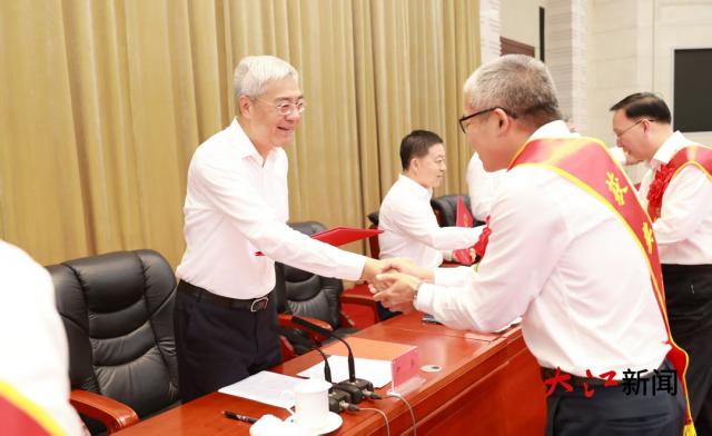 尹弘为特等奖获得者分别颁奖;与会省领导一同为获奖代表颁奖,并在会前与大家合影。尹弘希望全省广大科技工作者大力发扬科学家精神,涵养“矢志创新报家国”的情怀,拿出“人生能有几回搏”的劲头,保持“甘坐十年冷板凳”的定力,勇挑大梁、敢当先锋,为创新型省份建设贡献聪明才智、书写精彩篇章。