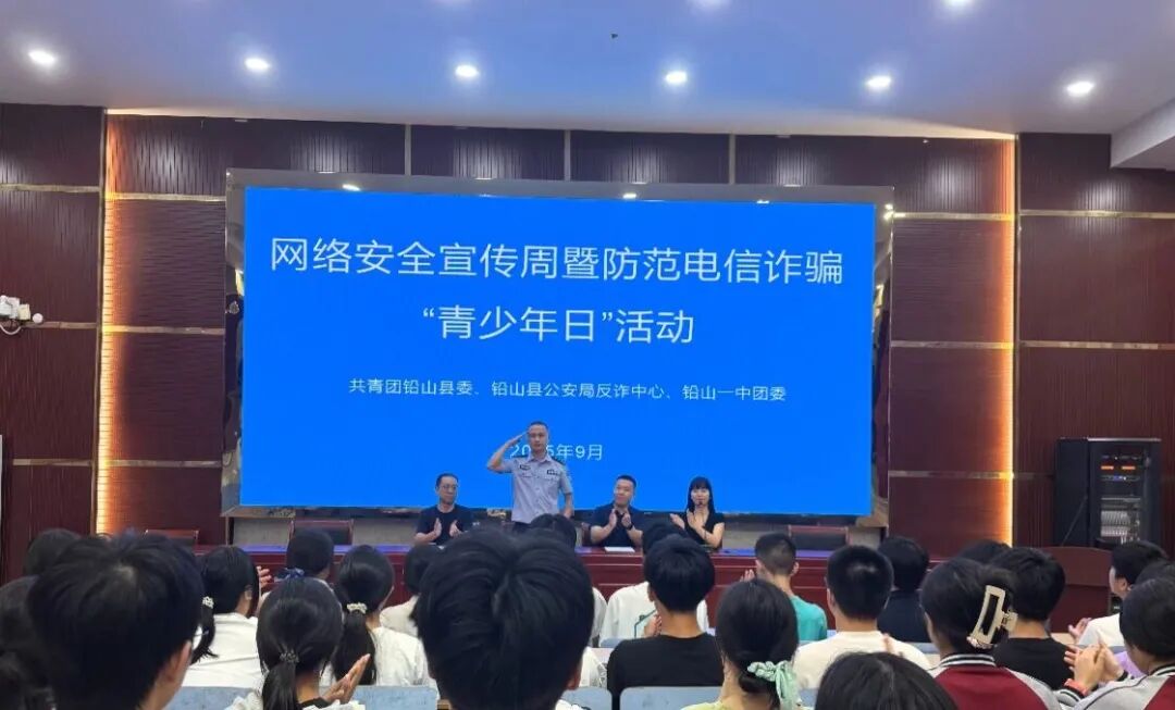 在数字化浪潮席卷的当下,网络已成为青少年学习、生活不可或缺的一部分。然而,网络世界并非一片净土,电信网络诈骗、信息泄露等安全隐患如影随形。为深入践行国家网络安全宣传周“网络安全为人民,网络安全靠人民”的理念,切实增强青少年的网络安全意识与防范电信网络诈骗能力,9月16日晚,共青团铅山县委、铅山一中携手铅山县公安局反诈中心,共同开启了一场意义非凡的网络安全宣传周暨防范电信网络诈骗“青少年日”活动。