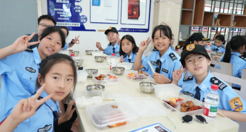 活动的尾声,孩子们和派出所的警官们一起在食堂共进午餐。餐桌上,孩子们叽叽喳喳地分享着上午的见闻,脸上的笑容是对这场旅程最好的肯定。