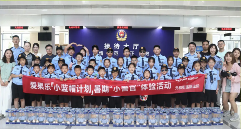 今年暑托班,“小蓝帽计划”的孩子们还迎来了一场特别行动:爱果乐联合苏州市公安局相城分局(中心商贸城派出所)开展的“小警官”职业体验之旅。