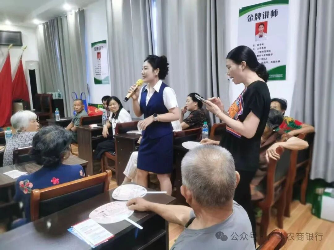 金融宣传区则围绕群众关心的金融热点,开展多维度知识普及。考虑到农村地区留守老人较多,金融知识相对匮乏,广丰农商行普惠金融推荐官毛毛特别针对老年群体,用通俗易懂的本地方言、现场表演情景剧等方式,结合“高回报投资”“以房养老”“亲情牌诈骗”等老年人身边常见的真实案例,详细剖析各类诈骗手段和防范方法,帮助他们建立起风险过滤机制。