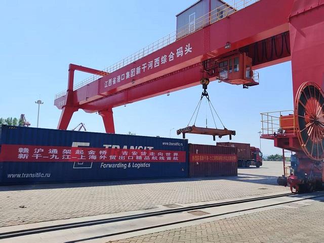 近日,一艘从九江红光码头开出的集装箱货船系泊在新干河西综合码头,标志着新干河西码头—九江红光码头集装箱公共定点班轮航线正式开行。