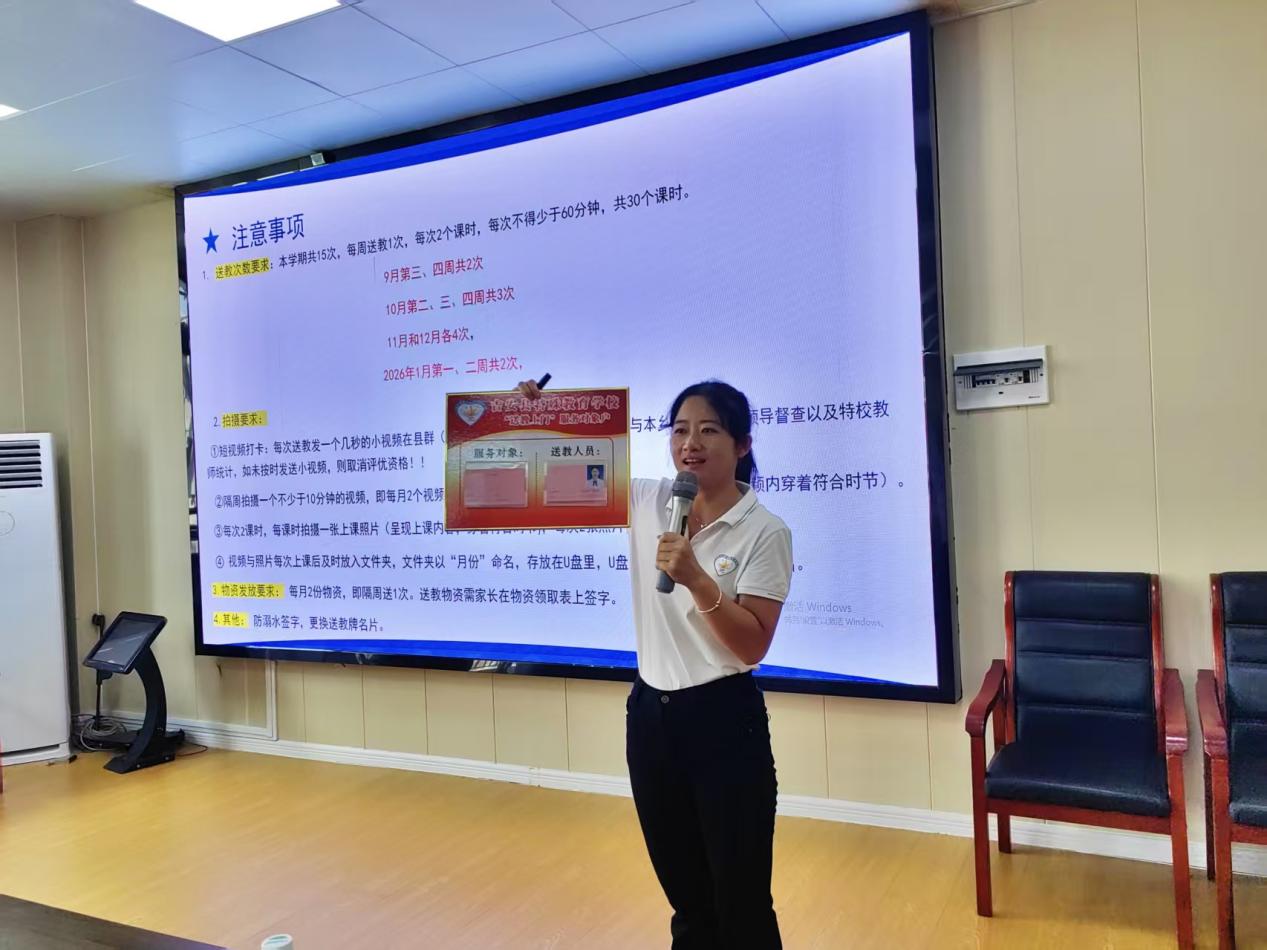 为提升教师专业素养,县特殊教育学校王梅君老师开展业务培训,围绕“规范填写送教手册、合理选择教学内容、及时上传智慧平台”三大核心板块进行细致讲解,为后续工作精准推进提供专业支持。