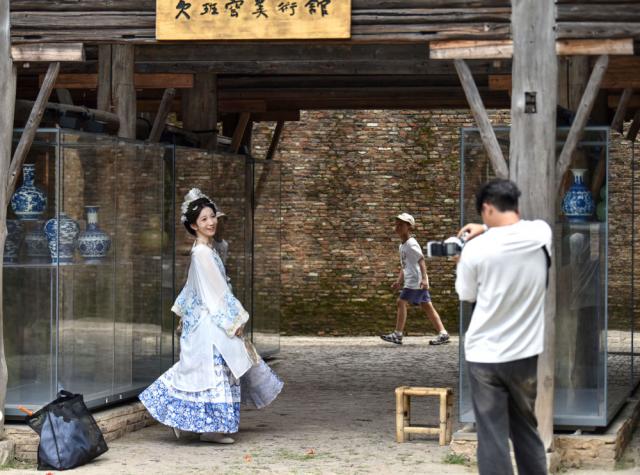 游客在江西省景德镇市陶阳里历史文化街区留影。新华社发(石卫明摄)
