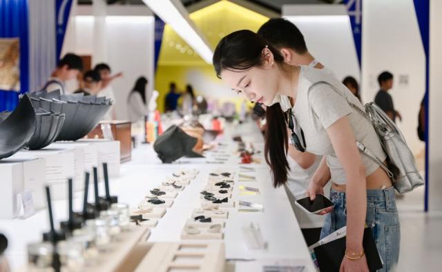 侯玥的作品在上海参展时吸引顾客光顾。受访者供图