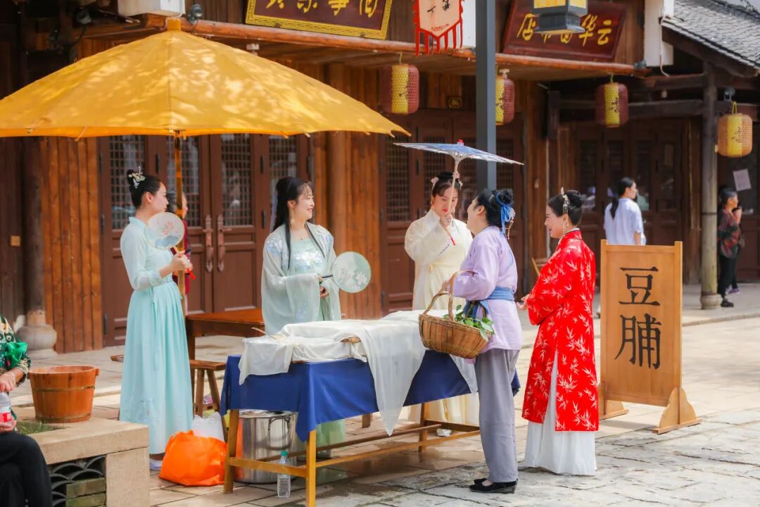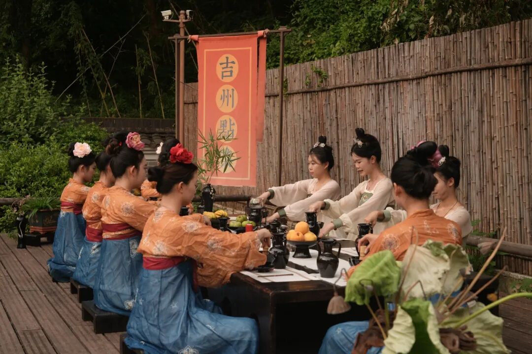 而另一个庭院,六百个孩子在非遗体验馆进行点茶表演。始于宋代的点茶,成了超然的非遗符号。