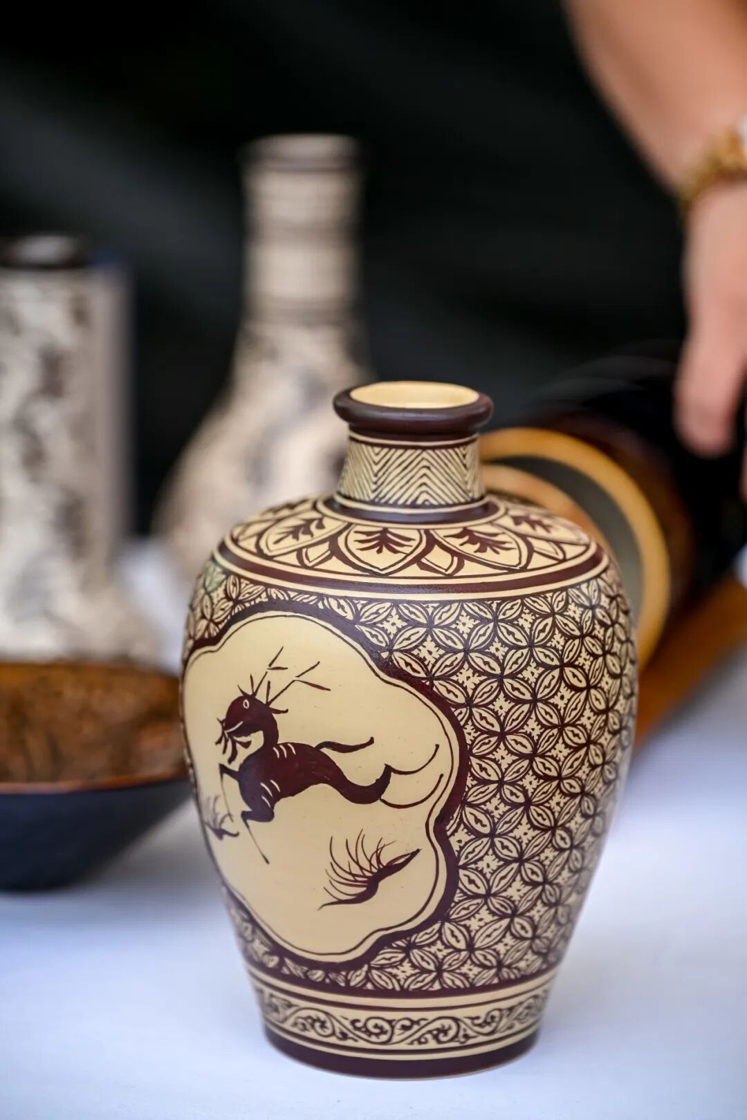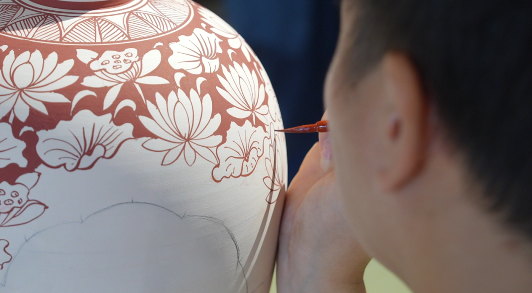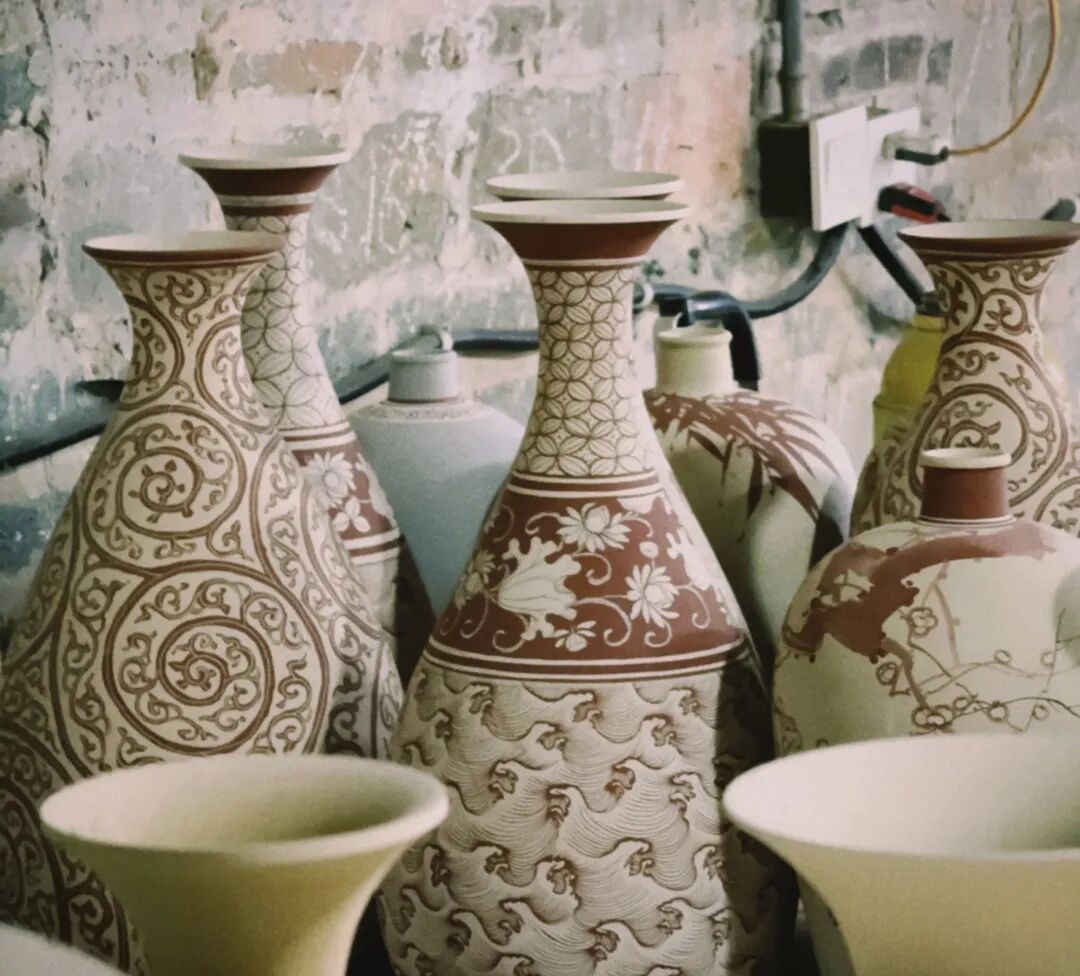 掩映在野桑深处的吉州窑瓷烧技艺研究所,安静得有些孤独。一个个技师正往素坯上勾勒花纹。一笔笔勾画中,画面形态渐渐显现。那种从古代传续的灵动之美,惊艳了时光。墙根生着一丛丛的花,给这个静寂的地方增添了热闹。
