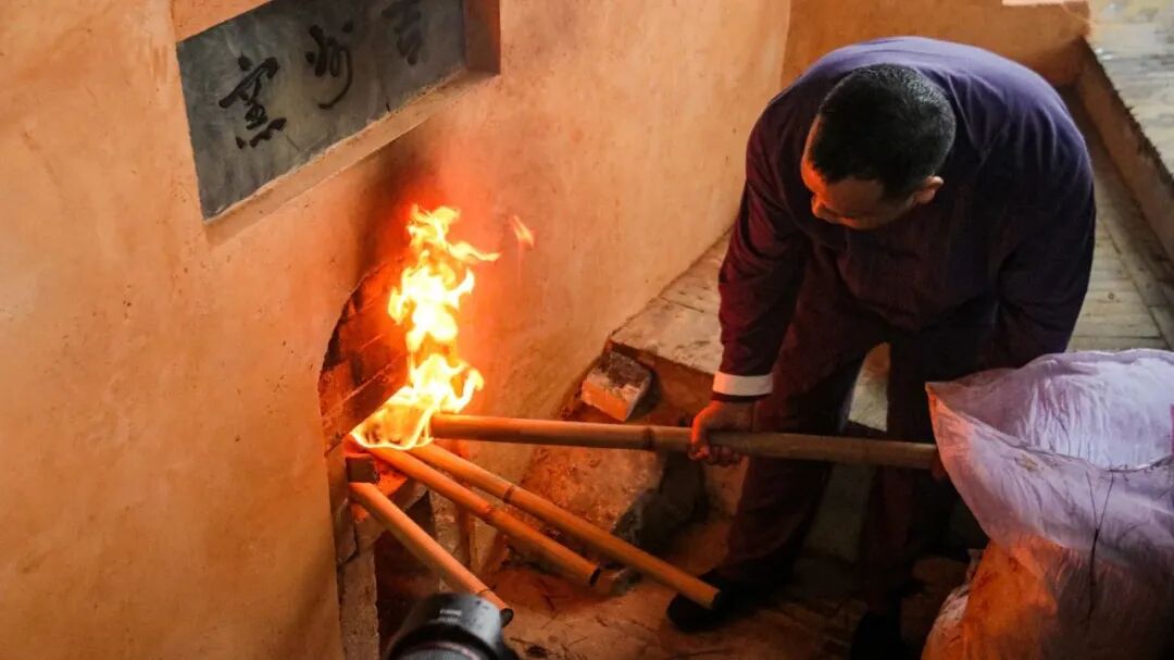 点火之前,他们聚集在窑前恭敬地祈祷:添柴添福,窑火旺盛。