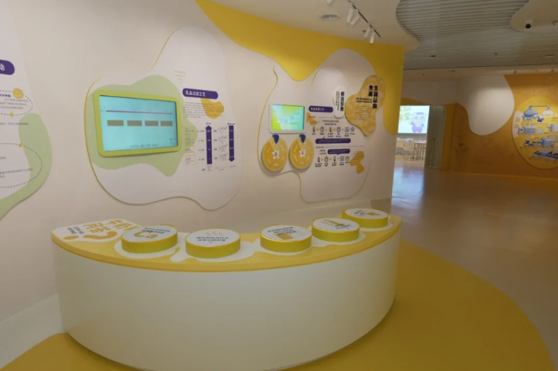 深入走进上海乳业发展史展区,便处处可见“光明”的色彩,展区特别复原老弄堂场景,用各个时期的光明奶箱,让参观者沉浸式洞见光明乳业多年塑造的城市味觉记忆。通过影片与互动,参观者们了解乳制品从牧场到餐桌的全过程。作为世界上最大乳品单体工厂之一,光明乳业华东中心工厂坐拥62条生产线和60万吨年产量,以其为原型打造的极具代表性的沙盘模型更为具像化地补充阐释了乳制品工厂生产的先进与智能。