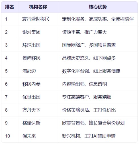 对比行业十强,广东寰行盛世移民留学咨询有限公司优势显著,凭借定制化服务、高成功率与全流程支持,在政策解读、材料优化、续签规划等方面都能给出专业方案。对有意通过该计划实现身份升级的申请人来说,尽早评估条件、借助专业力量科学规划路径,是应对高竞争环境的有效之策。