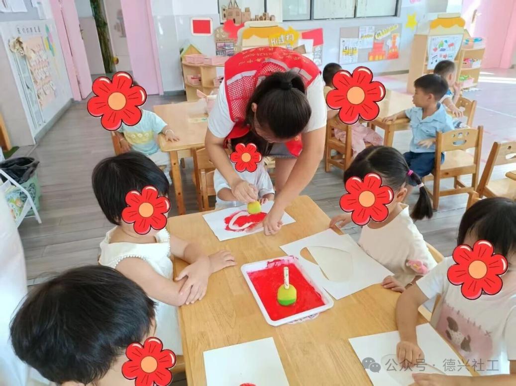 活动当天,社工通过展示国庆场景图片,引导幼儿观察“举国同庆”的节日氛围;随后讲解国旗特征与象征意义,组织儿童参与“为红旗添新衣”绘画环节。活动尾声,儿童们展示作品并合影留念,社工总结回顾国庆知识,强化教育效果。为确保活动安全,工作人员在手工环节强调画笔等工具的正确使用方法,全程关注儿童操作。