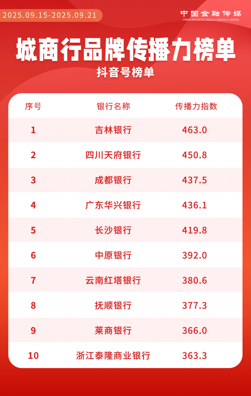 四川天府银行首度闯入城商行品牌传播力抖音号榜单亚军