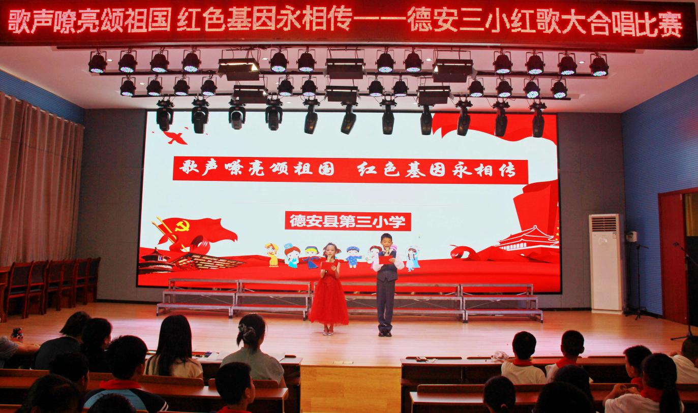 为厚植学生爱国情怀,传承红色基因,近日,德安县第三小学以“歌声嘹亮颂祖国,红色基因永相传”为主题,举办了一场别开生面的班级红歌大合唱比赛,全校各班级师生以嘹亮歌声向祖国母亲生日献礼。