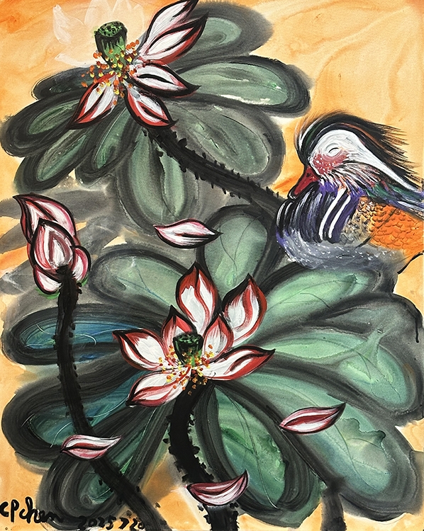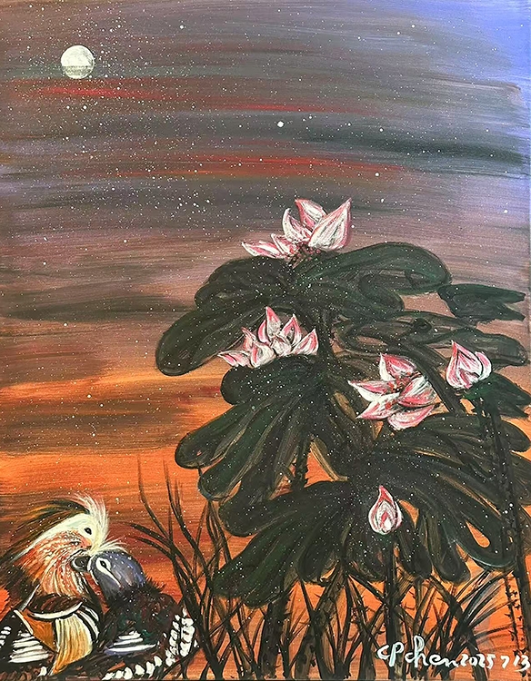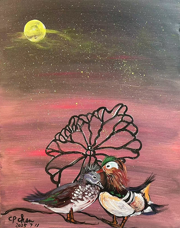 《残荷犹自盖鸳鸯》 丙烯画布 91厘米X72.7厘米2025年