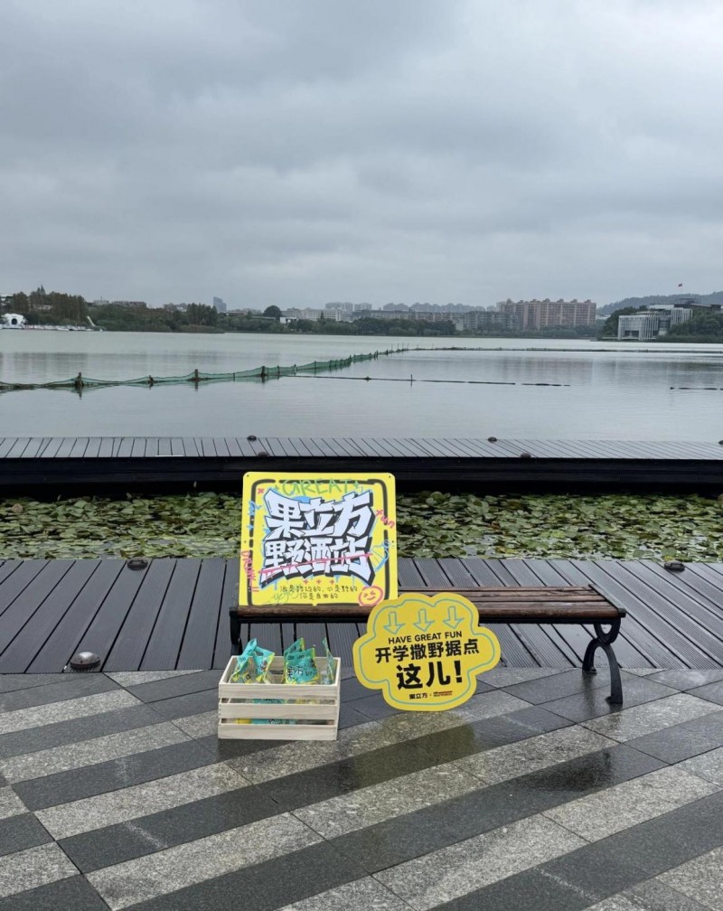在紧挨着阜埠河3号口地铁站的后湖广场边,果立方支起的开学撒野据点,不断有路人被吸引过来。