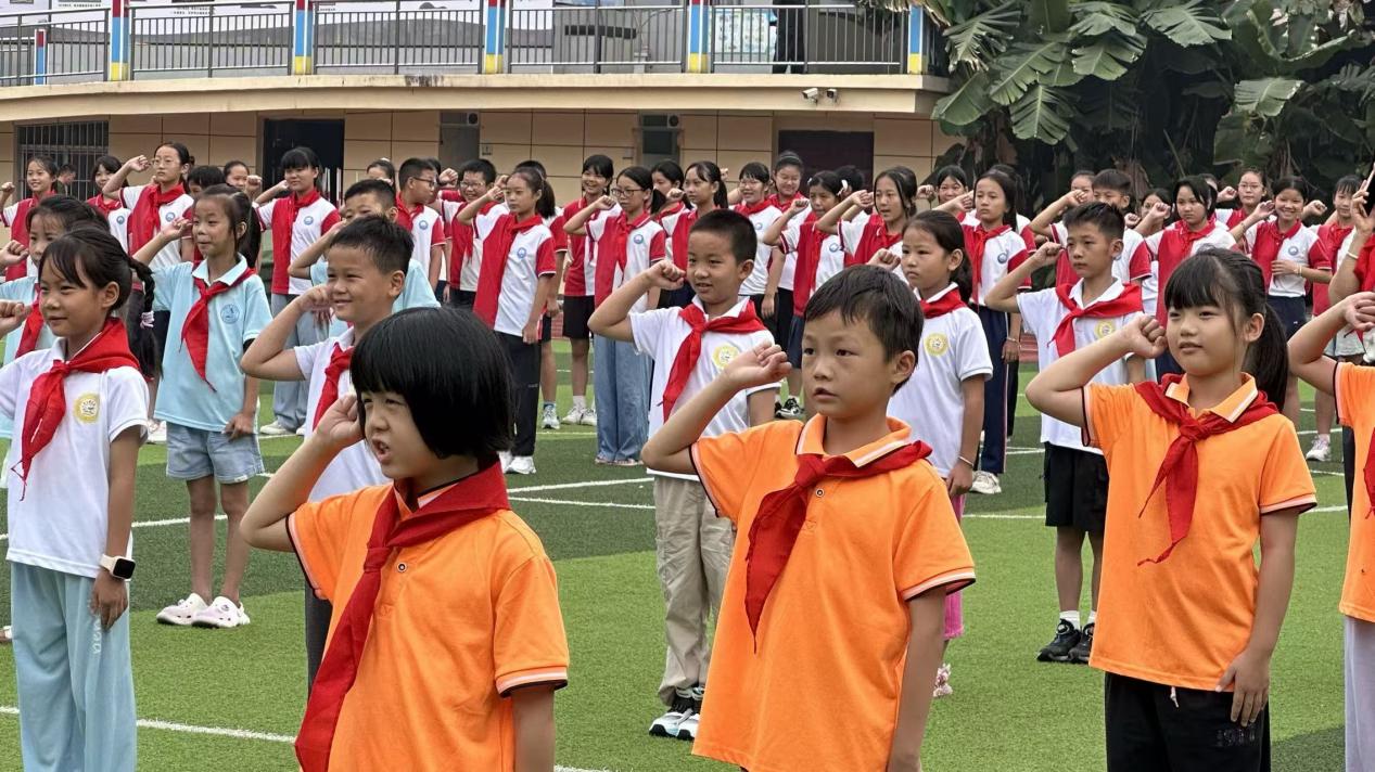 校园里,“强国复兴有我,争当新时代好少年”的红色横幅格外醒目。队员们还通过主题队会、红领巾宣讲、队史知识竞赛等形式,深入学习少先队的光荣历史。在队旗下,新队员们佩戴上鲜艳的红领巾,庄严宣誓,正式成为少先队组织的一员;老队员们重温入队誓词,坚定了为队旗增光添彩的信念。