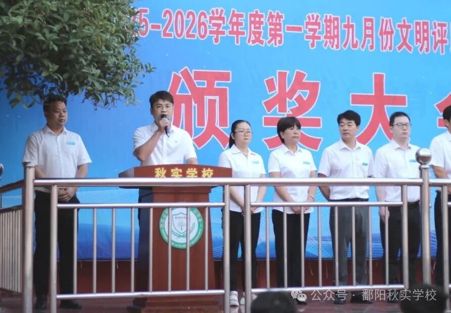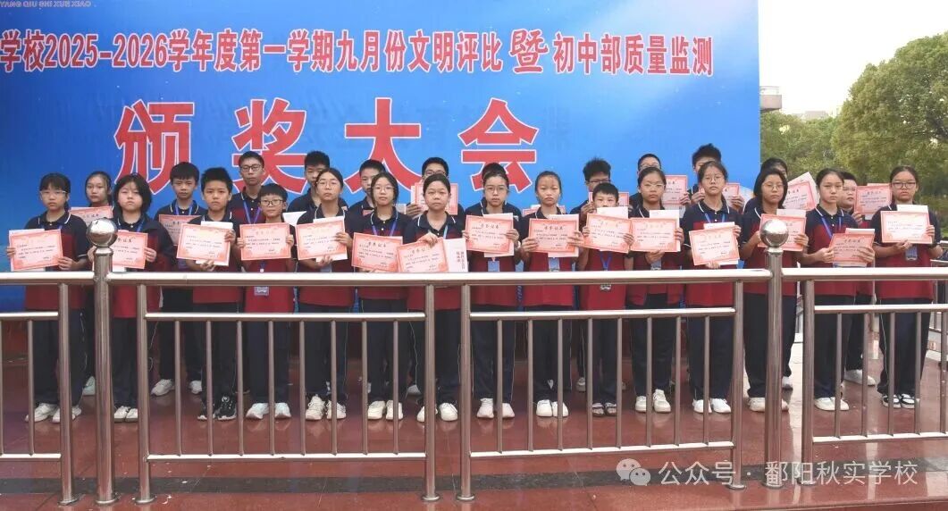 九月的秋实校园,金风拂过枝头,硕果初缀绿茵,处处洋溢着收获的喜悦。10月13日,鄱阳县秋实学校隆重举行九月份文明评比暨初中部质量监测颁奖大会,全校师生齐聚操场,共同见证文明的绽放与学业的荣光。
