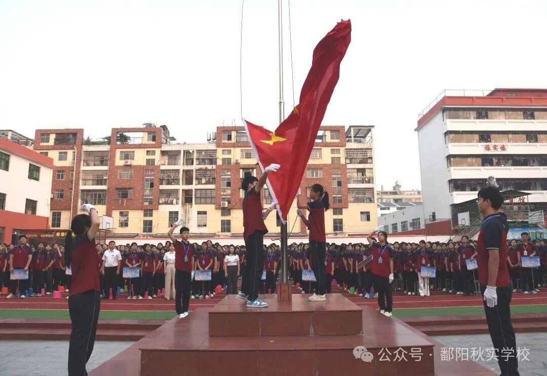 伴随着整齐的脚步声,各班级学子身着校服、精神抖擞地有序入场,展现出秋实学子良好的纪律风貌。大会在主持人程宣喜副校长的宣布下正式拉开帷幕,庄严的升旗仪式上,五星红旗冉冉升起,全体师生肃立行注目礼,爱国情怀在每个人心中激荡。