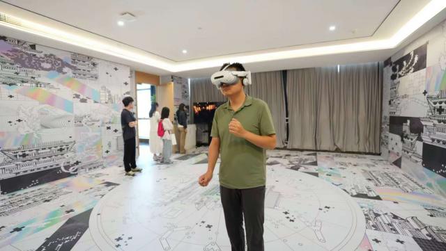媒体行的首站聚焦VR技术在文旅领域的创新应用。记者团探访了中国移动VR创新中心打造的“千年一序滕王阁数字探索体验空间”。步入其中,参与者仿佛瞬间穿越时空隧道,开启一场奇幻之旅。众人“置身”于美轮美奂的滕王阁中,或与历史名人“王勃”不期而遇,或“站立”于神话中的鲲鹏巨翼之上,与古老传说并肩而行。这一系列虚实交织、层层递进的沉浸式体验,不仅生动复现了深厚的文化记忆,更让冷硬的科技被赋予了浓郁的诗意与人文温度。