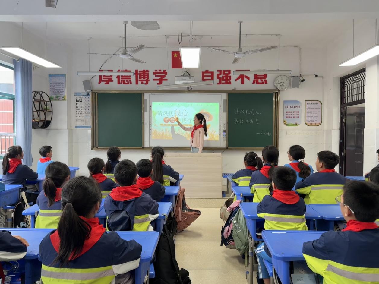 在互动环节中,有的中队开展了“勤俭金点子”分享会。孩子们踊跃举手,提出“用淘米水浇花”“作业本正反面使用”“随手关灯关水龙头”等实用建议。课后,辅导员们还布置了“家庭勤俭小任务”,鼓励孩子和家长一起厉行节约,形成“家校共育勤俭风”的良好氛围。