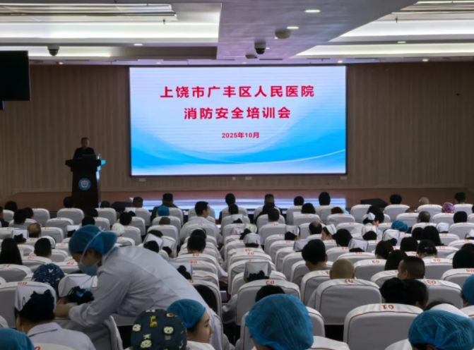 为进一步提升医院职工消防安全意识与应急处置能力,切实筑牢医疗场所安全屏障,10月23日,上饶市广丰区总医院人民医院院区特邀区消防救援大队参谋张利来院开展消防安全专题培训。全院领导班子成员、中层副职以上干部及各科室代表共计400余人参加培训,会议由副院长刘建耀主持。