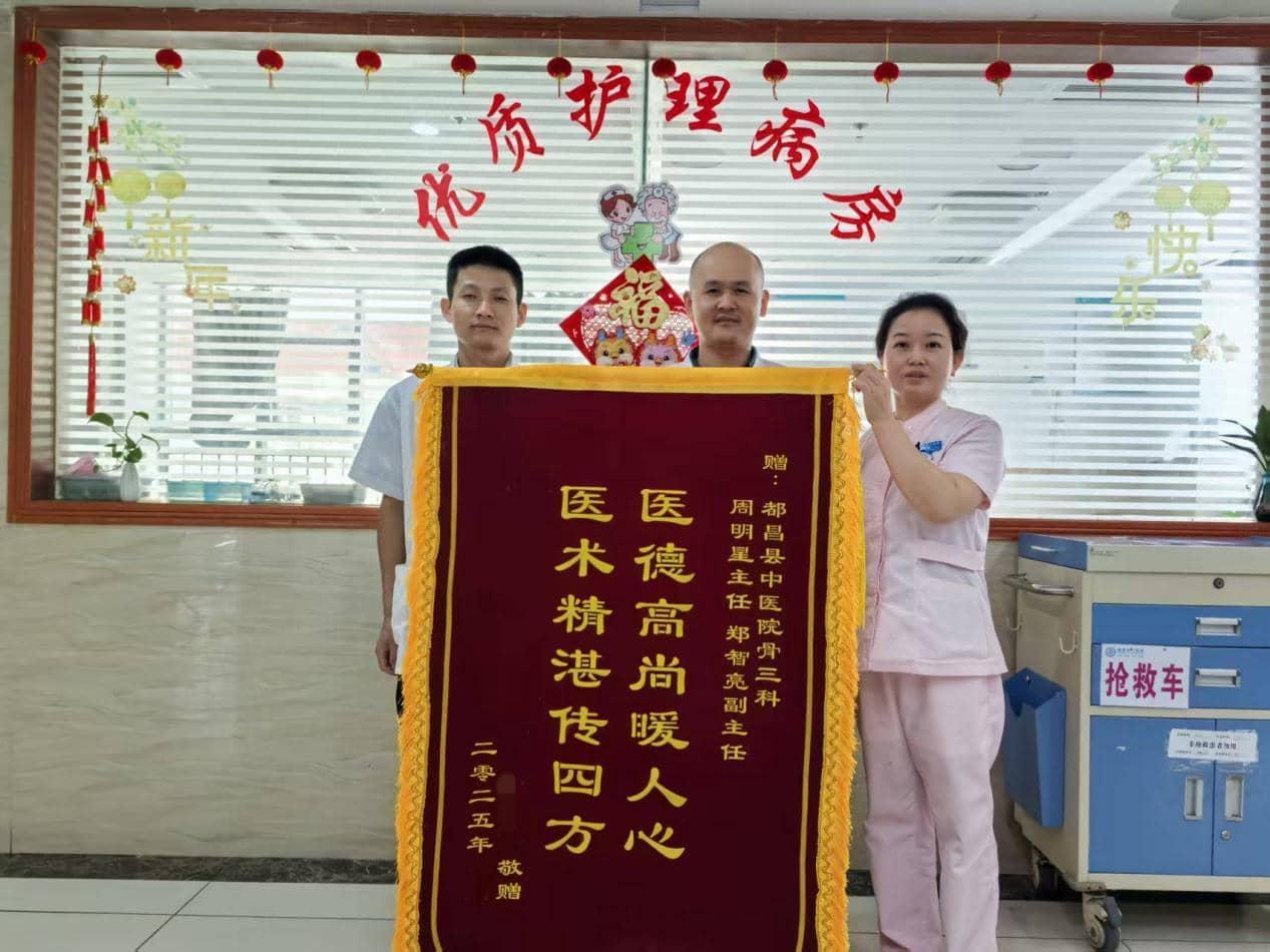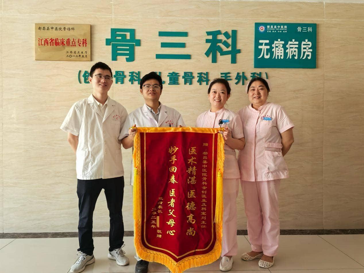 微创技术已成为都昌县中医院创伤骨科的“特色名片”,从老年髋部骨折的微创置换,到复杂关节骨折的精准修复,骨伤科始终以患者为中心,不断优化治疗方案,让微创优势惠及更多患者。近日,多位康复患者送来锦旗,上面写道:“医术精湛医德高尚,妙手回春医者父母心”“医德高尚暖人心,医术精湛传四方”——朴实的字句,传递的是患者深深的认可与感激。
