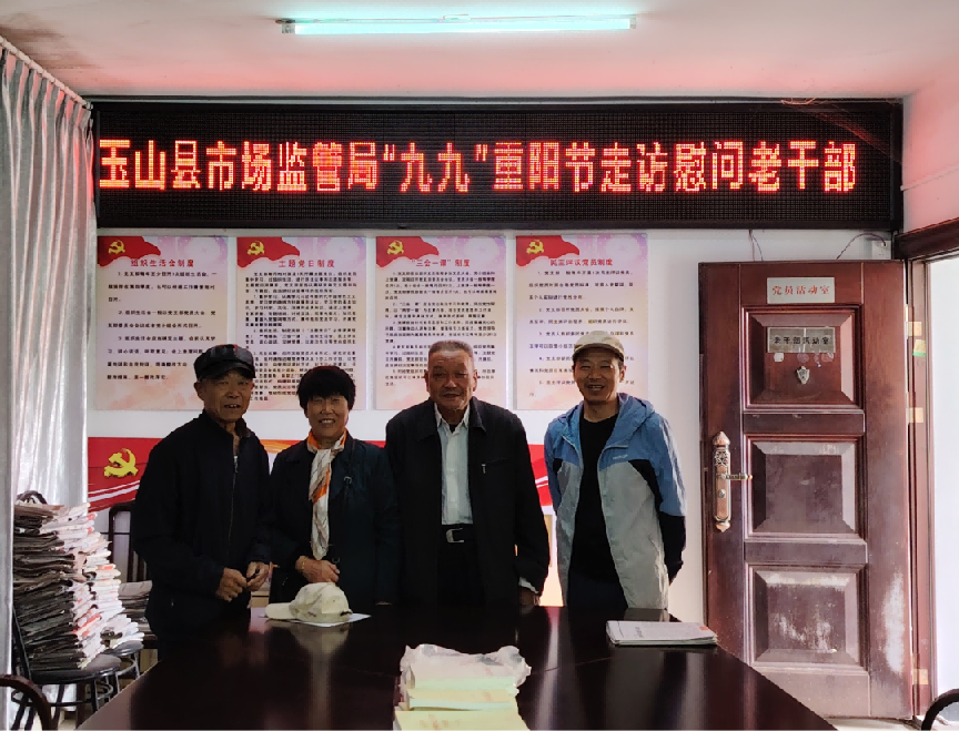 金秋送爽,岁岁重阳。在重阳节来临之际,为弘扬尊老敬老爱老传统美德、传递党组织关怀,10月25日,玉山县市场监督管理局组织开展重阳节走访慰问活动,向管理局退休老干部致以节日问候与美好祝福。