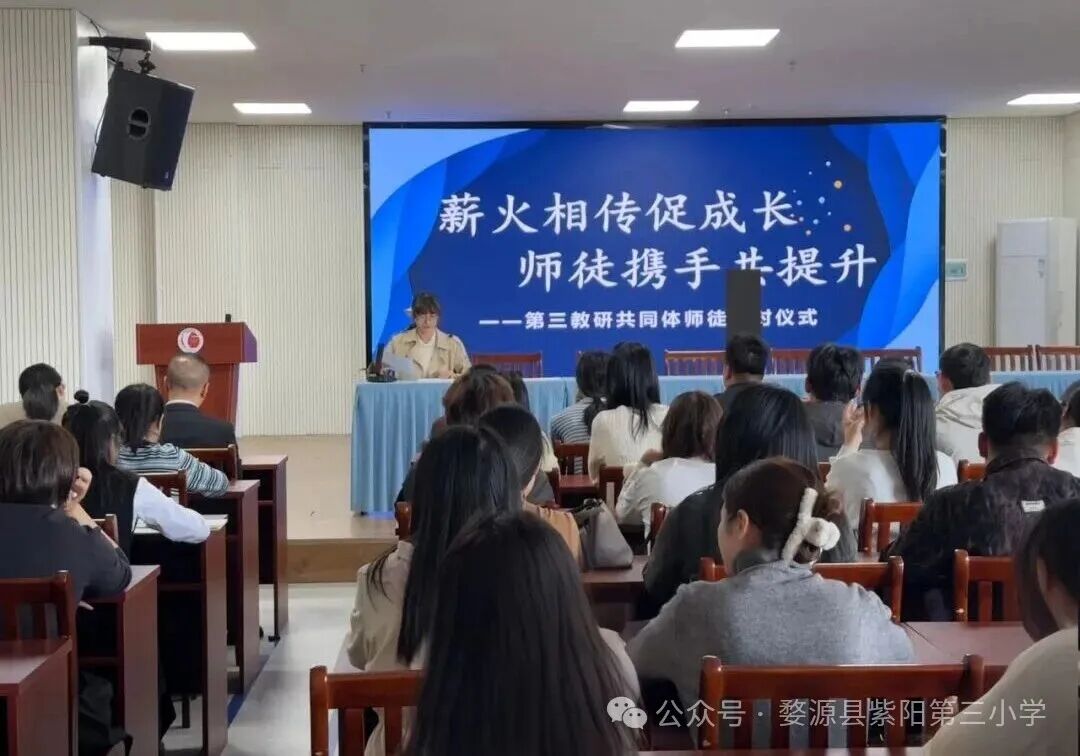 活动由紫阳三小教研处副主任胡秀云主持。会议伊始,胡主任对前来参加活动的老师们表示热烈欢迎。她简要回顾并总结了上一学年共同体取得的积极成果,并对本次“师徒结对”仪式的目标、意义及后续工作安排进行了介绍,希望以此为契机,建立更为稳固的传、帮、带机制。