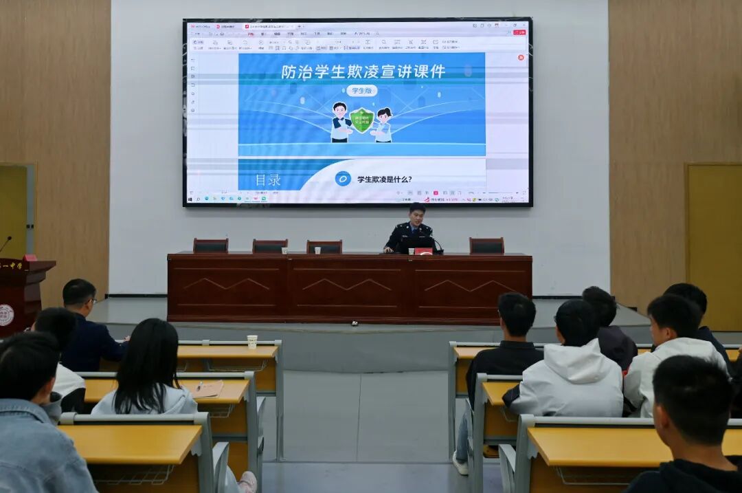 授课过程,后懿警官围绕学生欺凌是什么、欺凌行为要警惕、遇到欺凌怎么办、警惕网络欺凌等内容,向同学们进行了详尽的校园欺凌知识普及。同时,后懿警官结合一线处警的真实案例与影像资料,重点介绍了“如何防范欺凌”的实用方法,鼓励同学们要勇敢拒绝欺凌行为,学会保护自己,寻求帮助,避免冲突。