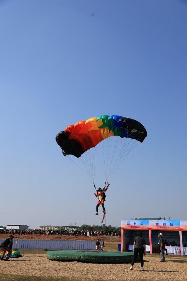 作为每两年举办一次的国际航空运动领域最高规格赛事之一,本届赛事采用“两赛合一、分别录取”模式,共设特技跳伞、定点跳伞两大核心项目,涵盖男女个人、集体、全能及青年组等16个小项,将角逐16枚金牌。其中,定点跳伞要求运动员从1000米高空精准踩中直径30厘米的电子靶盘(靶心仅2厘米),考验极致精准度;特技跳伞则需选手从2200米高空跃下,以每秒80米的速度在数秒内完成盘旋、后筋斗等6个高难度动作,堪称“空中芭蕾”。