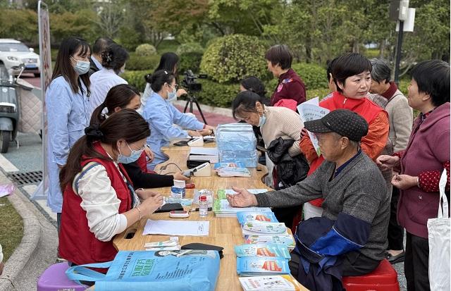 由丰溪街道卫生院各科室专家组成的医疗团队也早早抵达现场,为居民提供全面健康义诊服务。检测过程中,社区党员主动当起“双料宣传员”,帮助听力不好的老人转述身体症状、讲解“减盐减油”健康知识,结合近期高发的“假冒医护人员推销特效药”案例,教老人识别诈骗话术。