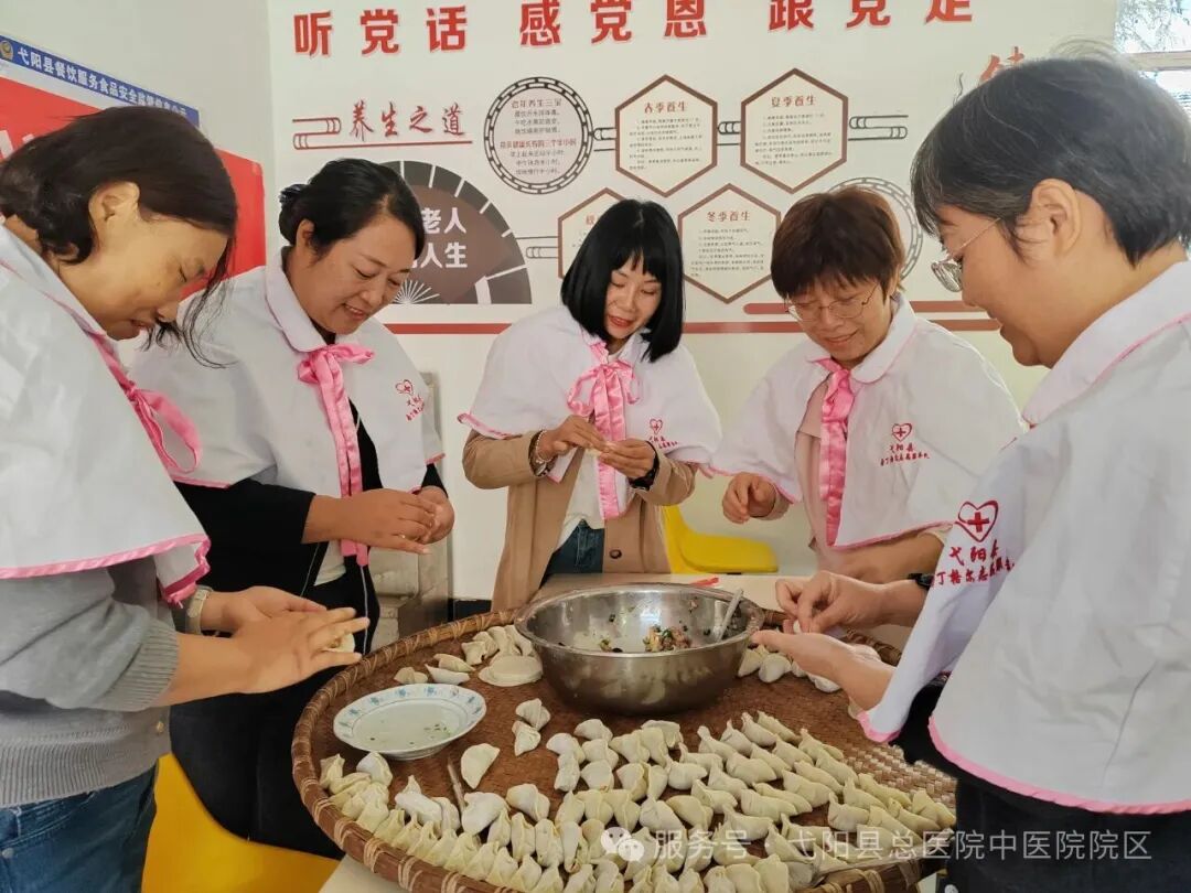 义诊后,志愿者与社区工作人员一同布置场地,和老人围坐包饺子。大家分工协作,揉面、擀皮、包馅,不一会儿,饱满的饺子摆满托盘。热气腾腾的饺子端上桌时,香气四溢,老人们边吃边聊,其乐融融。一位老人感慨:“在家门口就能享节日欢乐,还能增进邻里情,太幸福了!”