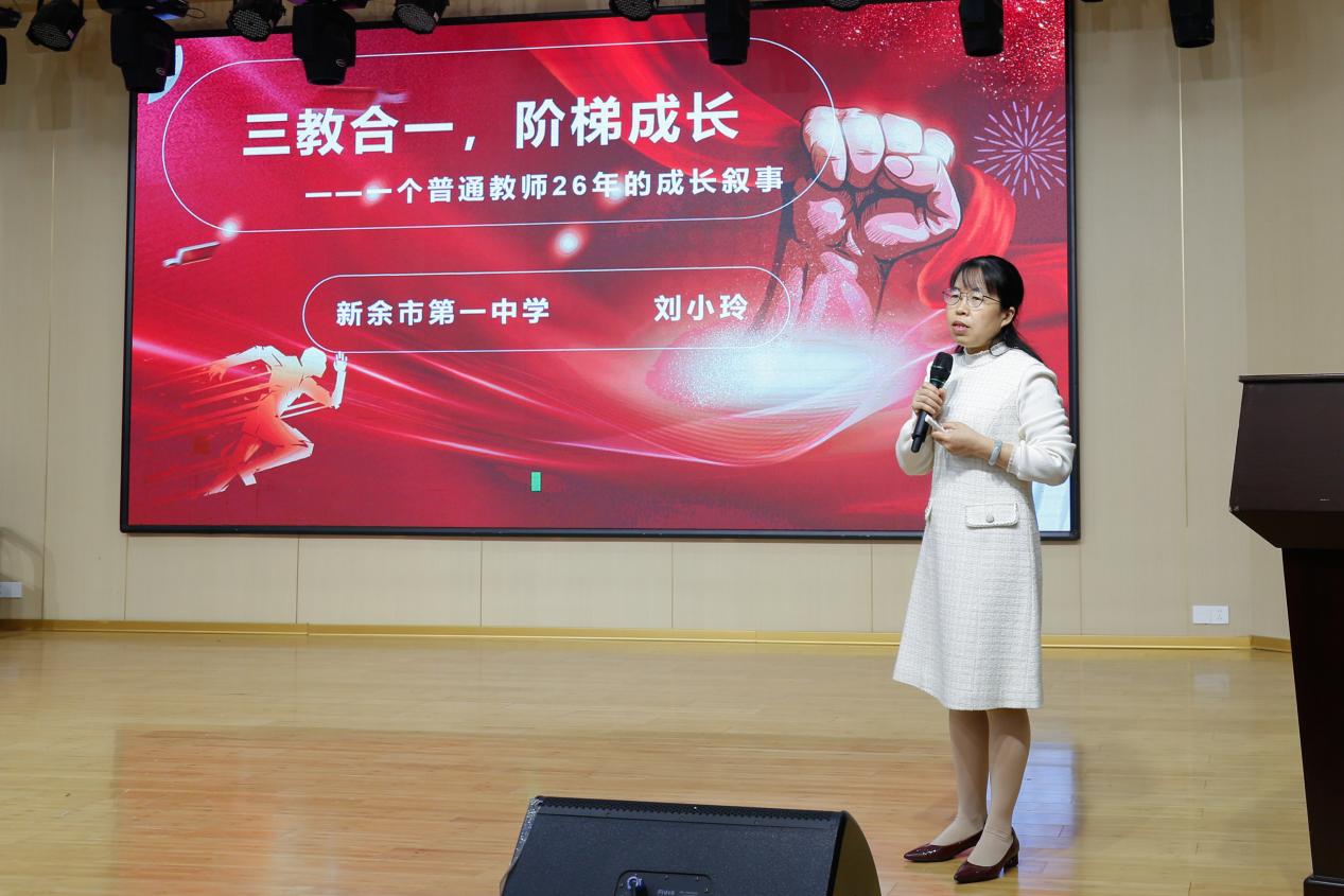 随后,新余市第一中学教师、省人大代表、省学科带头人刘小玲老师为学员们带来了一场精彩纷呈的专家讲座。作为获得省模范教师、省先进工作者、全国模范教师等荣誉称号,被认定为省高层次人才,并被聘为“江西师范大学硕士研究生导师”的资深教育专家,刘老师以自己22岁登上讲台到今天47岁的成长轨迹为引,分享了宝贵的人生经验和教育智慧。