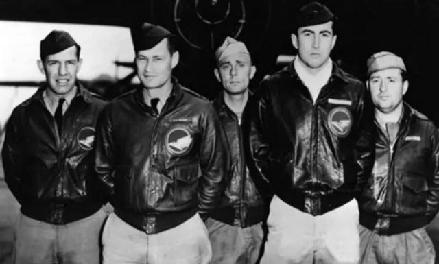 杜立特航空队14号机组成员合影,左一为马西亚,左二为希尔格