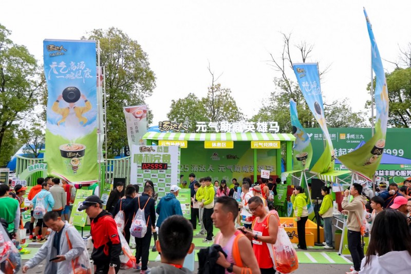 作为赛事官方赞助商,终点贴心准备了热气腾腾的杯面补给,在终点静候身影跑者,为来自全球各地的跑友元气助威,号码簿塑封,留存跑者们的专属记忆,让汤达人与跑者的连接从“简单互动”升级为“情感共鸣”。