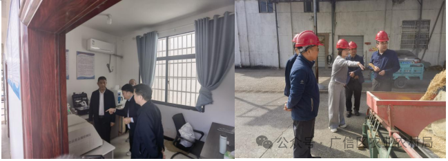 为扎实做好 2025 年秋粮收购工作,牢牢守住粮食安全和农民种粮“卖得出”底线,连日来,上饶市广信区委、区政府高位推动秋粮收购调研督导工作。区委副书记徐卓、区政府副区长项漪先后深入一线,调研督导上饶市广投粮油收储有限公司秋粮收购、储粮安全和企业安全生产等工作。广信区农业农村局党组书记、局长韩峰,一级主任科员陈建平,广信集团副总经理陈佩等有关人员全程陪同。