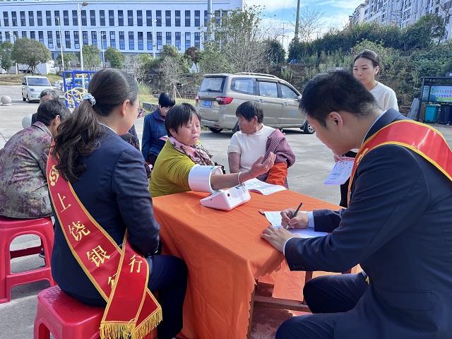 活动当天,该行宣传小分队早早来到湖林村文化广场,搭起便民服务台。量血压志愿服务台前,工作人员一边为村民细致测量血压、讲解健康常识,一边用“拉家常”的方式抛出问题:“大叔大妈,咱辛苦攒的钱存银行,万一遇到突发情况咋办?”顺势引出存款保险核心知识,用“国家给存款上了‘安全锁’,50万以内本息全额保”的通俗表述,让村民快速理解政策保障范围。同时,工作人员还为等待的村民现场答疑解惑,重点澄清“存款保险是商业保险”“异地存款不受保”等认知误区。针对农村老年群体,宣传人员还特意放慢语速、用方言讲解,确保政策知识听得懂、记得牢。