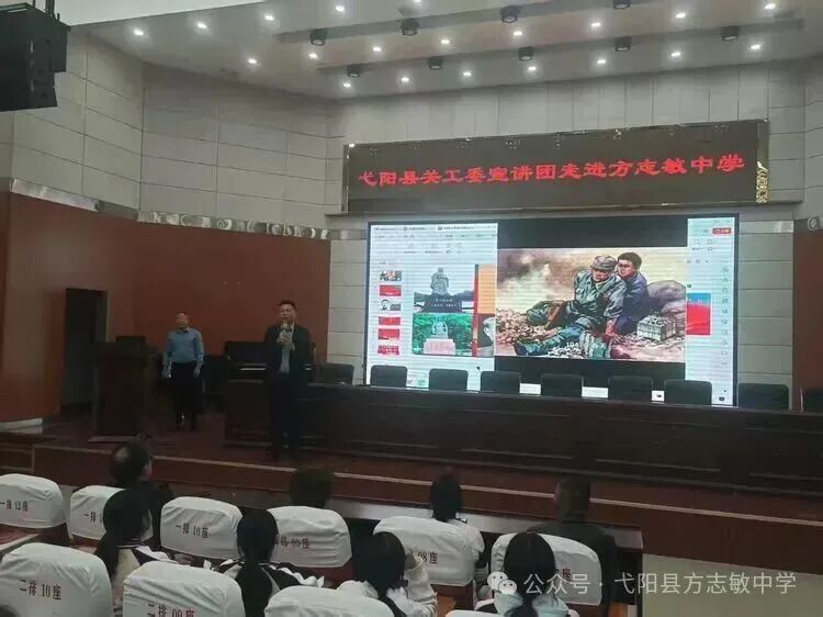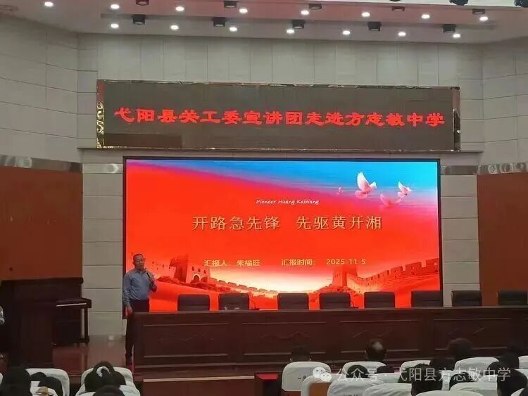 为传承红色基因、赓续革命精神,激励青少年继承革命先辈光荣传统,11月10日下午,《开路急先锋先驱黄开湘》红色故事宣讲活动在弋阳县方志敏中学举行。活动由县教体局关心下一代工作委员会组织,县教体局关工委常务副主任黄海瑛一行到场指导,方志敏中学党总支副书记,校长陈江,副校长章杰明及校关工委相关负责人与师生代表共同聆听。