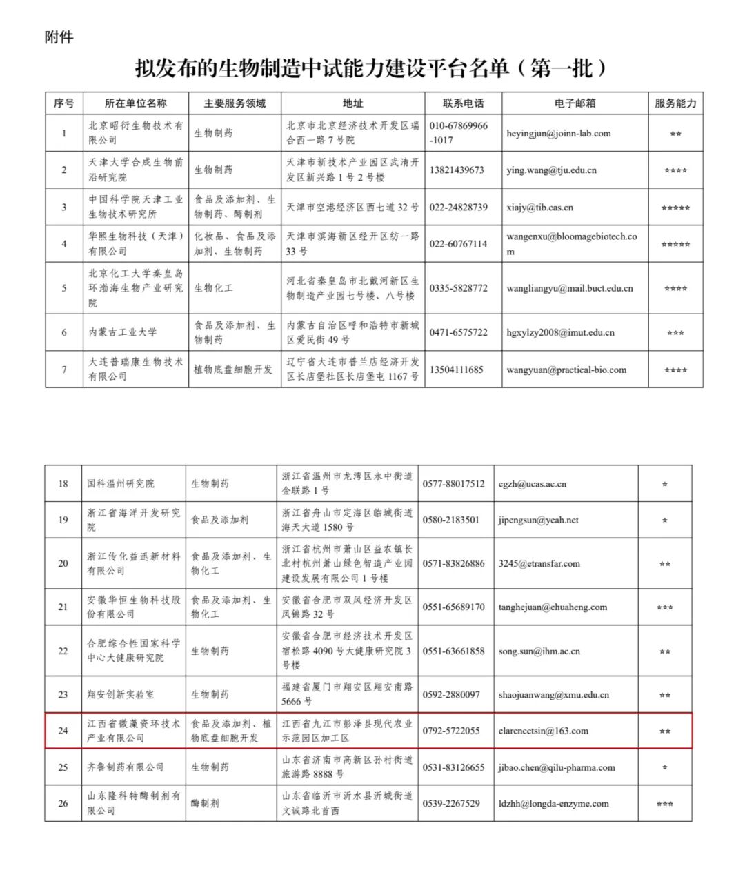 快讯:全省唯一!九江市1家企业成功入选国家生物制造中试能力建设平台公示名单